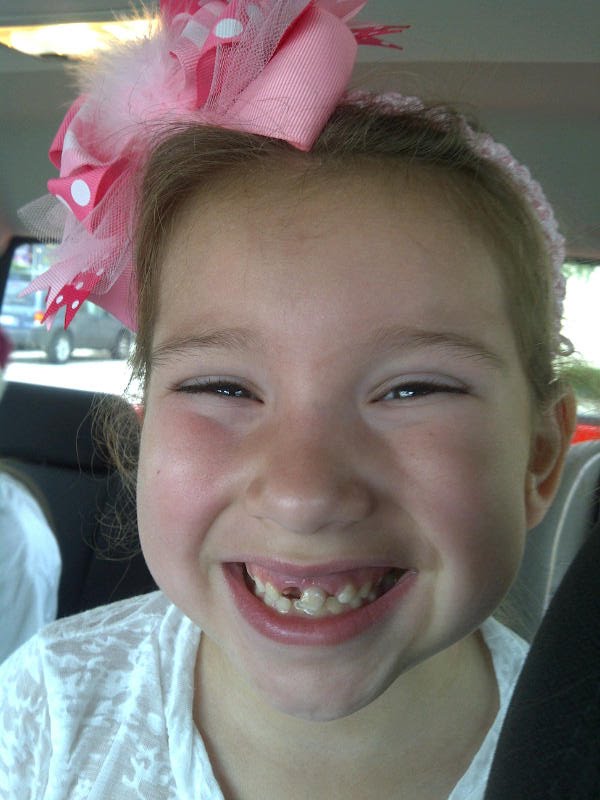 My girl lost 3 teeth (with another to be pulled today because she totally looks like Nanny McPhee, and while she is super cute, and while I'm all for letting a kid be a kid, I cannot bear her Kindergarten graduation pictures to look like this:)